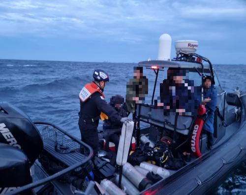 Ç¥·ù»óÅ·Π±¸Á¶¸¦ ±â´Ù¸®´ø Àá¼ö»ç¸¦ ¹ß°ßÇÑ ÇØ°æÀº ÇÔ²² ¼ö»öÀÛ¾÷À» ÁøÇàÇÑ º¸Æ®(Àá¼ö»ç À̵¿¿¡ µ¿¿øµÈ º¸Æ®)¸¦ ÅëÇØ Àá¼ö»ç 2¸íÀ» ±¸Á¶ÇßÀ¸¸ç °Ç°»óÅ´ ÀÌ»óÀÌ ¾ø´Â °ÍÀ¸·Î È®ÀεƴÙ.