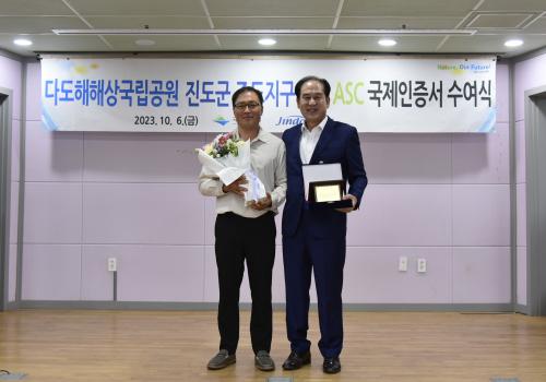 Áøµµ±º ¼ö»êÁö¿ø°ú °ü°èÀÚ´Â ¡°ÁöÀÚü, ±¹¸³°ø¿ø°ø´Ü, Áö¿ªÁֹΠµî ´ÙÀÚ°£ Çù·ÂÀ¸·Î ÇÔ²²ÇÑ Àü±¹ ÃÖÃÊ ASC ±¹Á¦ÀÎÁõÀθ¸Å, Áøµµ±º Àüº¹ »ê¾÷ ¹ßÀü¿¡ µµ¿òÀÌ µÇ±æ ¹Ù¶õ´Ù¡±¶ó°í ¹àÇû´Ù.