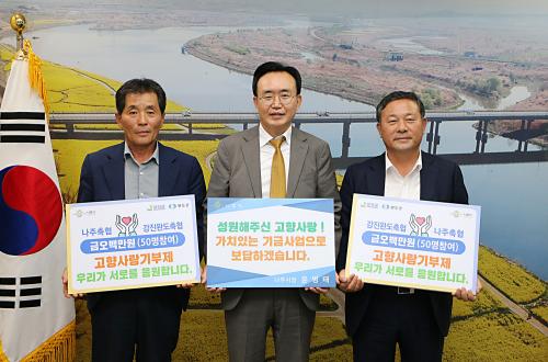 À±º´Å ³ªÁÖ½ÃÀåÀº ¡°°íÇâ»ç¶û±âºÎ¸¦ ÅëÇØ ÁÁÀº Àο¬À» ¸Î°Ô µÆ´Ù. À̹ø »óÈ£ ±âŹÀ» °è±â·Î Áö¿ª °£ ±³·ù¿Í »ó»ýÀÌ Áö¼ÓµÇ±æ ¹Ù¶õ´Ù¡±¶ó¸ç ±âʽÄÀ» ÃàÇÏÇß´Ù.