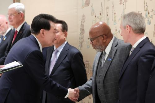 À± ´ëÅë·ÉÀº ÀÌ ÀÚ¸®¿¡¼ ´ëÇ¥´Ü°ú ±¹Á¦ Çö¾È°ú Çѹݵµ »óȲ µî¿¡ ´ëÇØ ÀǰßÀ» ±³È¯Çϰí À̵éÀÌ ±¹Á¦»çȸÀÇ ÆòÈ, Á¤ÀÇ ¹× À뱂 ÁõÁøÀ» À§ÇØ ¸®´õ½ÊÀ» ¹ßÈÖÇϰí ÀÖ´Ù°í Æò°¡Çß´Ù.