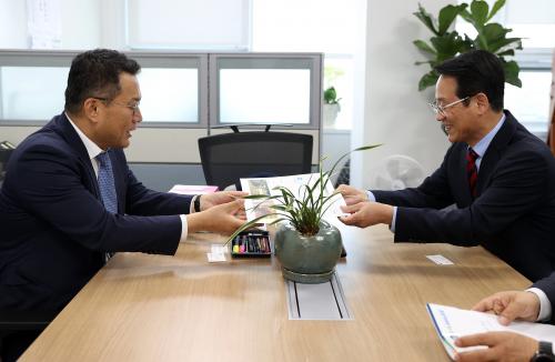 *»çÁø¼³¸í1: °Áø¿ø ±º¼ö°¡ Çà¾ÈºÎ¸¦ ¹æ¹®ÇØ ÀÌÇѰæ Àç³¾ÈÀü°ü¸®º»ºÎÀåÀ» ¸¸³ª Ưº°±³ºÎ¼¼ Áö¿øÀ» °ÇÀÇÇϰí ÀÖ´Ù.