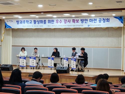 ¹æ°úÈÄÇб³ ¾÷¹« ´ã´çÀÚ ¹× Àü³² ±³À°°¡Á· 100¿© ¸íÀÌ Âü¼®ÇÑ À̳¯ °øÃ»È¸´Â ±èÁø³² Àü³²µµÀÇȸ ±³À°À§¿øÈ¸ ºÎÀ§¿øÀå Ãà»ç, ¡®¹æ°úÈÄÇб³ ¿ì¼ö °»ç È®º¸ ¹æ¾È ¸¶·Ã¡¯ ÁÖÁ¦ Åä·Ð, ûÁß°úÀÇ ÁúÀÇÀÀ´ä ¼øÀ¸·Î ÁøÇàµÆ´Ù.