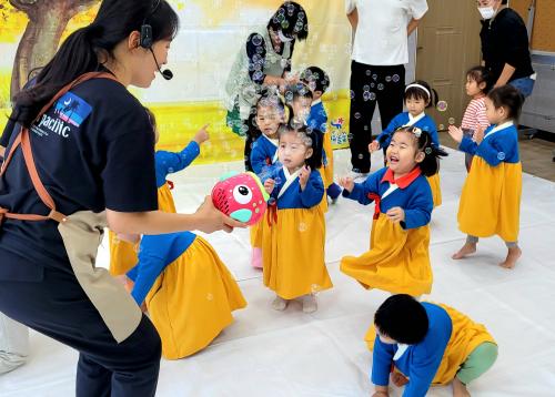 ƯÈ÷, º¸È£ÀÚ¿Í Á¤¼ ±³°¨ ³ª´©±â, Ä£±¸¿Í Çùµ¿¼º ¹è¿öº¸±â µîÀ» ÁÖÁ¦·Î ÇÑ ÀÚ¿¬½º·¯¿î ³îÀÌ ¹æ½ÄÀÇ ¼ö¾÷ Âü¿© ¿µÀ¯¾Æ 27¸íÀÇ Ãâ¼®·ü 96%¿¡ ´ÞÇÒ Á¤µµ·Î Àα⸦ ²ø¾ú´Ù.