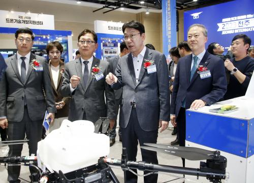 ¿ì¹ü±â ÀüÁÖ½ÃÀåÀº ¡°À̹ø ¹Ú¶÷ȸ´Â ½Ã¹Î°ú ÇÔ²² ÀÏ»ó ¼Ó µå·ÐÀÇ ´Ù¾çÇÑ È°¿ë¼º°ú ÇÔ²² ¹«ÇÑÇÑ ¼ºÀå °¡´É¼ºÀ» È®ÀÎÇÏ´Â ¶æ±íÀº ½Ã°£À̾ú´Ù¡±¸é¼ ¡°ÀüÁֽô °ÇÑ °æÁ¦ ÀüÁÖ¸¦ ½ÇÇöÇϱâ À§ÇØ »ê¾÷ÀÎÇÁ¶ó Á¶¼º°ú ±â¾÷ ¼ºÀå Áö¿ø, ÷´Ü±â¼úÀ» Á¢¸ñÇÑ »ó¿ëÈ ¸ðµ¨ °³¹ß µî ´ëÇѹα¹ Çõ½Å¼ºÀåÀ» ¼±µµÇÒ µå·Ð »ê¾÷ À°¼º¿¡ ´õ¿í Èû¾²°Ú´Ù¡±°í °Á¶Çß´Ù.