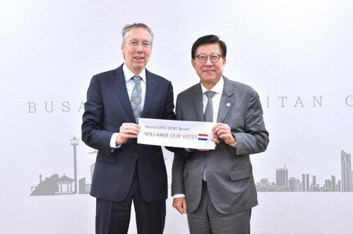 À̾î¼, ¹Ú ½ÃÀåÀº ¡°³×´ú¶õµå´Â Çѱ¹ÀÇ ¿ì¹æ±¹ÀÌ´Ù. ½º¸¶Æ®½ÃƼ·Î À¯¸íÇÑ ¾Ï½ºÅ׸£´ã, ģȯ°æ ½º¸¶Æ® ¹°·ùÇ×À» °¡Áø ·ÎÅ׸£´ã µî ºÎ»êÀº ´Ù¾çÇÑ ºÐ¾ß¿¡¼ ³×´ú¶õµå¿ÍÀÇ ¿ìÈ£±³·ù Çù·ÂÀ» ÁõÁøÇϸ®¶ó ±â´ëÇϰí ÀÖ´Ù¡±¶ó¸ç, ¡°ÆäÀÌÅÍ ¹Ý ´õ Çø®Æ® ÁÖÇѳ״ú¶õµå´ë»çÀÇ À̹ø ºÎ»ê ¹æ¹®À¸·Î ºÎ»ê-³×´ú¶õµåÀÇ Çù·ÂÀÌ °ÈµÇ¸®¶ó »ý°¢ÇÑ´Ù¡±¶ó°í ÀüÇß´Ù.
