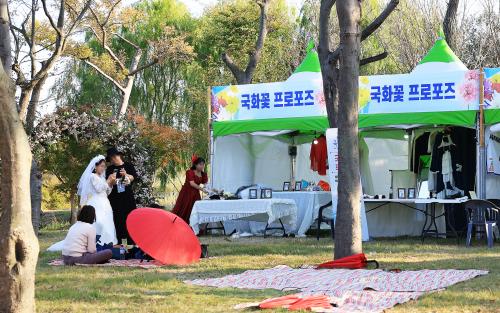 ¡®±¹È²É ÇÁ·¯Æ÷Á¿¡¼´Â °ü¶÷°´µé¿¡°Ô ¹«·á·Î µå·¹½º¿Í ¼öÆ®, ±¹È·Î ¸¸µç ºÎÄɸ¦ ´ë¿©ÇØÁÖ°í ÀÖÀ¸¸ç ±¹È·Î Àå½ÄµÈ Á¶Çü¹° ¾Õ¿¡¼ Àü¹® »çÁøÀÛ°¡°¡ »çÁø ÃÔ¿µÀ» ÇØ ¸¶Ä¡ ½ÅÈ¥ºÎºÎ°¡ ¿þµù ÃÔ¿µÀ» ÇÏ´Â °Í°ú °°Àº »ý»ýÇϸ鼵µ »ç¶û ³ÑÄ¡´Â üÇèÀ» ÇÒ ¼ö ÀÖ´Ù.