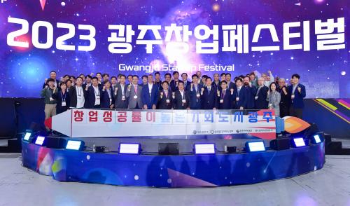 ±¤ÁÖ±¤¿ª½Ã(½ÃÀå °±âÁ¤)´Â Áö¿ªÀÇ Ã¢¾÷¹®È¸¦ È®»êÇϰí â¾÷ À¯¸ÁÁÖ ¹ß±¼À» À§ÇÑ ¡®2023 ±¤ÁÖâ¾÷Æä½ºÆ¼¹ú(Gwangju Startup Festival, GJSF 2023)¡¯ÀÌ 2ÀÏ ¿ÀÈÄ 2½Ã ±è´ëÁßÄÁº¥¼Ç¼¾ÅÍ¿¡¼ °³¸·½Ä°ú ÇÔ²² ÀÌÆ²°£ÀÇ ÀÏÁ¤À» ½ÃÀÛÇß´Ù.