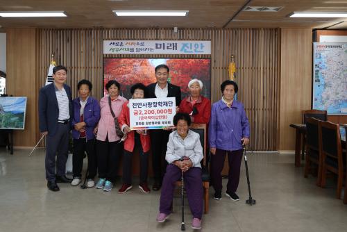 ÀÌ¿¡ ÀüÃἺ ÀÌ»çÀå(Áø¾È±º¼ö)Àº ¡°Áö¿ª ÁֹεéÀÌ ¾ÕÀå¼ Áø¾ÈÀÇ ÀÎÀç¾ç¼ºÀ» À§ÇÑ ÀåÇбâ±Ý ¸¶·Ã¿¡ µ¿ÂüÇØÁÖ½Ã´Ï Á¤¸»·Î °¨»çµå¸°´Ù¡±¸ç ¡°ÁֽЏ¶À½ÀÌ ÇêµÇÁö ¾Êµµ·Ï ¿ì¸® Áø¾È¹ßÀüÀ» À̲ø ÀÎÀçÀ°¼º¿¡ ¾ÕÀå¼ ³ª°¡°Ú´Ù.¡±°í ¸»Çß´Ù.