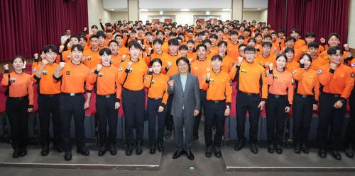 ° ½ÃÀåÀº À̳¯ ±¤ÁÖ¼Ò¹æÇб³¿¡¼ ½ÅÀÓ ¼Ò¹æ°ø¹«¿ø ±³À°°úÁ¤ ±³À°»ý 123¸íÀ» ¸¸³ª ¡°»ý¸íÀ» ±¸ÇØ¾ß ÇÑ´Ù´Â »ç¸í°¨Àº ¶§·Î´Â Á×À½µµ, ´«¾ÕÀÇ ºÒ±æµµ, µÎ·ÆÁö ¾Ê°Ô ÇÑ´Ù.