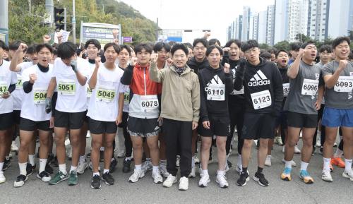 Áغñ¿îµ¿À» ¸¶Ä¡°í Ãâ¹ß ½ÅÈ£°¡ ¿ï¸®ÀÚ, ¼±µÎ ´ë¿ÀÎ Áß‧°íµîÇлý ³²ÀںΠ300¿© ¸íÀÌ ´Þ·È°í ±× µÚ¸¦ ÀÌ¾î ±³À°°¡Á·ºÎ¡¤Æ¯¼öÇлýºÎ‧ÃʵîºÎ µî Áú¼Á¤¿¬ÇÏ°Ô ÄÚ½º¸¦ µû¶úÀ¸¸ç, ¸¶Áö¸·À¸·Î ¹Ý·Á°ß µ¿¹Ý Âü°¡ÀÚ°¡ ´Þ·Á¼ ´«±æÀ» ²ø¾ú´Ù.