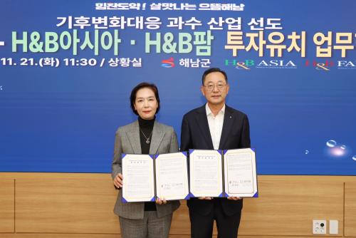 Çù¾à½Ä¿¡´Â ¸íÇö°ü ÇØ³²±º¼ö, H&B¾Æ½Ã¾Æ¡¤H&BÆÊ ±èÈñÁ¤ ´ëÇ¥ÀÌ»ç, ¹ÚÁÖÇö Àü¹«°¡ Âü¼®ÇØ ÇØ³²±º ±âÈĺ¯È´ëÀÀ °ú¼ö»ê¾÷ ¼±µµ¸¦ À§ÇÑ Çù·Â°ü°è¸¦ ±¸ÃàÇϱâ·Î Çß´Ù.
