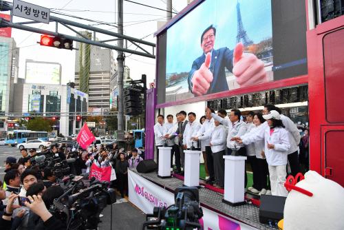 À̹ø Çà»ç´Â 2030¼¼°è¹Ú¶÷ȸ °³ÃÖÁö ¹ßÇ¥(11.28.)¸¦ 7ÀÏ ¾ÕµÎ°í ½Ã¹ÎµéÀÇ À¯Ä¡ ¿±â°¡ ±× ¾î´À ¶§ º¸´Ù ¶ß°Å¿î °¡¿îµ¥ Åð±Ù ½Ã°£´ë À¯µ¿ Àα¸°¡ ¸¹Àº ¼¸é±³Â÷·Î Àαٿ¡¼ ÁøÇàµÅ, 1õ¿© ¸í ÀÌ»óÀÇ ¸¹Àº ½Ã¹ÎÀÌ Âü¿©ÇÏ¸ç ¿¶í °ü½É°ú ÀÀ¿øÀ» º¸³Â´Ù.