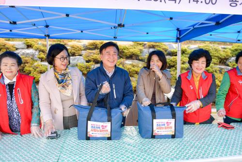 À̳¯ Çà»ç´Â ±Ç¿µ³² ¿©¼ö½Ã¿©¼º´ÜüÇùÀÇȸÀå°ú ȸ¿øµéÀÌ Âü¿©ÇØ ¸êÄ¡ººÀ½, Áø¹Ìä, ¹èÃß±èÄ¡ µî 10Á¾ÀÇ 12¸¸¿ø »ó´ç ¹Ø¹ÝÂùÀ» Á÷Á¢ Æ÷ÀåÇØ º¸°Ç¼Ò¿¡¼ ÁغñÇÑ ¾î¸°ÀÌ ¿µ¾çÁ¦ 2Á¾°ú ÇÔ²² ´ë»ó °¡±¸¸¦ Á÷Á¢ ¹æ¹®ÇØ Àü´ÞÇß´Ù.