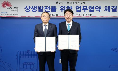 ÀüÁÖ½Ã¿Í Çѱ¹³ó¾îÃ̰ø»ç ÀüºÏÁö¿ªº»ºÎ(º»ºÎÀå ÀÌÁ¤¹®)´Â 1ÀÏ ÀüÁÖ½ÃÀå½Ç¿¡¼ ¿ì¹ü±â ÀüÁÖ½ÃÀå°ú ÀÌÁ¤¹® º»ºÎÀå µî ¾ç ±â°ü °ü°èÀÚµéÀÌ Âü¼®ÇÑ °¡¿îµ¥ ¡®³ó¾÷±â¹Ý½Ã¼³ÀÇ ¾ÈÀü¼º °³¼±°ú ¾ÆÁßÈ£¼ö µî Àú¼öÁö °ü±¤»ç¾÷ ÃßÁøÀ» À§ÇÑ »ó»ý¹ßÀü ¾÷¹«Çù¾à¡¯À» ü°áÇß´Ù.