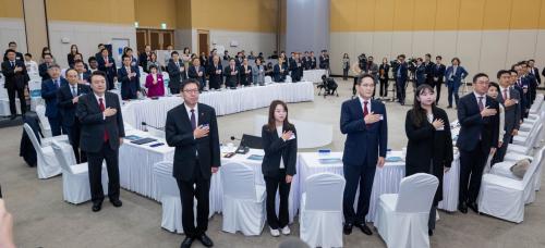 ÀÌ¿¡ ´ëÅë·ÉÀº¡°´ëÇѹα¹ÀÇ ±¹°¡±ÕÇü¹ßÀü°ú Áö¼Ó¼ºÀåÀ» À§Çؼµµ ºÎ»êÀÇ ±Û·Î¹ú Çãºêµµ½Ã Á¶¼ºÀ» À§ÇÑ ¹üÁ¤ºÎ Â÷¿øÀÇ ³ë·Â¿¡ ÃÖ¼±À» ´ÙÇϰڴ١±¸ç, ¡°Æ¯º°¹ý Á¦Á¤°ú ¹üÁ¤ºÎ ÃßÁøÃ¼°è¸¦ ½Å¼ÓÈ÷ ±¸¼º‧°¡µ¿ÇÏ°í ³²ºÎ±Ç ¼ºÀ嵿·ÂÀÌ µÉ Áö¿ªÇö¾È »ç¾÷µéµµ ¸·Èû¾øÀÌ ÃßÁøµÉ ¼ö ÀÖµµ·Ï ¹ÚÂ÷¸¦ °¡ÇØ ³ª°¡°Ú´Ù¡±¸ç ¾à¼ÓÇß´Ù.
