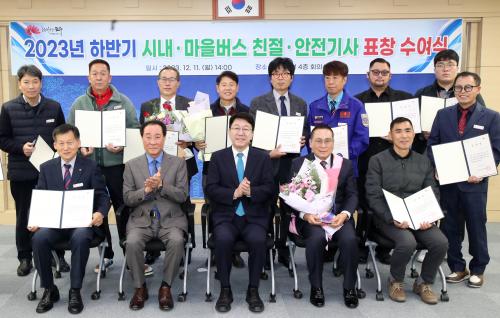 ¿ì¹ü±â ÀüÁÖ½ÃÀåÀº 11ÀÏ ¡®2023³â ÇϹݱ⠽ó»¹ö½º Ä£Àý¡¤¾ÈÀü±â»ç¡¯·Î ¼±Á¤µÈ ¹ÚÁ¾ÀÎ ¾¾(¼ºÁø¿©°´) µî 12¸íÀÇ ¿îÀü¿ø¿¡°Ô ǥâÀåÀ» ¼ö¿©Çß´Ù.