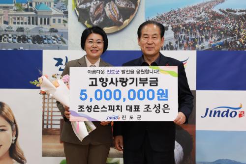 Á¶¼ºÀº ´ëÇ¥´Â ¡°°íÇâ»ç¶û±âºÎ±ÝÀÌ ³» °íÇâ ÁøµµÀÇ ¹ßÀüÀ» À§ÇØ ¼ÒÁßÇÏ°Ô ¾²ÀÌ±æ ¹Ù¶õ´Ù¡±¸ç °íÇâ»ç¶û±âºÎ±ÝÀÇ ¿¬°£ ÃÖ°í¾×ÀÎ 500¸¸¿øÀ» ±âŹÇß´Ù.