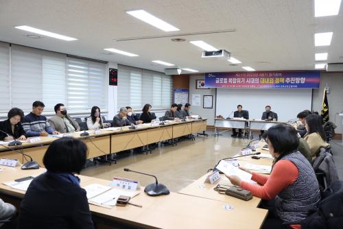 À̹ø ȸÀÇ´Â Á¦21±â ¹ÎÁÖÆòÅë ÀÚ¹®À§¿ø 2023³â ¸¶Áö¸· Á¤±âȸÀÇ·Î, ¡®±Û·Î¹ú º¹ÇÕÀ§±â ½Ã´ëÀÇ ´ë³»¿Ü Á¤Ã¥ ÃßÁø¹æÇ⡯À» ÁÖÁ¦·Î ¿µ»ó ½Ãû°ú ÀÚÀ¯Åä·ÐÀ» ÁøÇàÇϰí, 2023³â ÅëÀÏ È°µ¿»ç¾÷ Æò°¡ ¹× Çѹݵµ ÆòÈÅëÀÏ °ü·Ã ´Ù¾çÇÑ Àǰ߼ö·ÅÀ» ÁøÇàÇß´Ù.