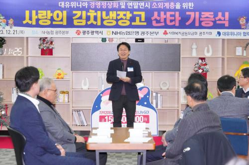 À̳¯ NH³óÇùÀºÇà ±¤ÁÖº»ºÎ¿¡¼ ¿¸° ¡®»ç¶ûÀÇ ±èÄ¡³ÃÀå°í »êŸ ±âÁõ½Ä¡¯¿¡´Â °±âÁ¤ ±¤ÁÖ±¤¿ª½ÃÀåÀ» ºñ·ÔÇØ ¹Ú³»Ãá ³óÇùÀºÇà ±¤ÁÖº»ºÎÀå, ³óÇùÁß¾Óȸ¡¤Áö¿ª³óÇùÁ¶ÇÕÀå µî ³óÇù°ü°èÀÚ¿Í »çȸº¹Áö°øµ¿¸ð±Ýȸ, À§´Ï¾Æ Çù·Â»ç ´ëÇ¥ µîÀÌ Âü¼®Çß´Ù.