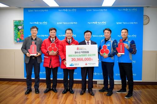 Áö³ 12¿ù 29ÀÏ ½ÃÀå½Ç¿¡¼ ¿¸° Àü´Þ½Ä¿¡´Â Á¤±â¸í ½ÃÀå, ¿©¼ö½Ãû °ø¹«¿ø ³ëµ¿Á¶ÇÕ ±èµ¿Çö À§¿øÀå, Àü³²»çȸº¹Áö°øµ¿¸ð±Ýȸ ±èµ¿±Ø »ç¹«Ã³Àå µî 7¸íÀÌ Âü¼®Çß´Ù.