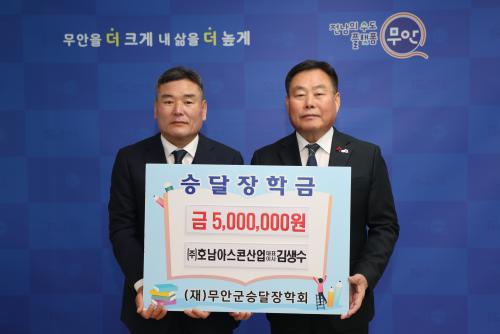 ¢ßÈ£³²¾Æ½ºÄÜ ±è»ý¼ö ´ëÇ¥, ¹«¾È±º ½Â´ÞÀåÇÐ±Ý 5¹é¸¸¿ø ±âŹ