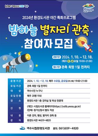 ¿©¼ö½Ã ȯ°æµµ¼°ü, ¡®¹ãÇÏ´Ã º°ÀÚ¸® °üÃø¡¯ ¾ß°£ ÇÁ·Î±×·¥ ¿î¿µ