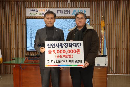 ±Ç¿µÅ °øÀåÀåÀº ¡°»õÇØ¸¦ ¸Â¾Æ Áö¿ª»çȸ¿Í ´õºÒ¾î »ì¾Æ°¡¾ß ÇÑ´Ù´Â ¸¶À½°¡ÁüÀ¸·Î Áø¾ÈÀÇ ÀÎÀç À°¼ºÀ» À§ÇØ ÀåÇбÝÀ» Àü´ÞÇÏ°Ô µÆ´Ù¡±¸ç ¡°¾ÕÀ¸·Îµµ Áö¿ªÀÎÀçÀÇ ¹ßÀü¿¡ µµ¿òÀÌ µÉ ¼ö ÀÖµµ·Ï Áö¼ÓÀûÀÎ °ü½É°ú ¼º¿øÀ» º¸Å°ڴ١±¶ó°í ¸»Çß´Ù.