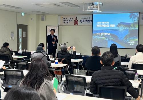 Âü¼®ÀÚµéÀº ÀÌ¾î ¡®2023³â ÀüÁÖ¿©ÇàÇб³ ¼º°úº¸°í¡¯¿Í ¡®ÀüÁÖ¿©ÇàÇб³ ¼ö·á»ý ȯ´ã¡¯ ½Ã°£À» ÅëÇØ ÀüÁÖ¿©ÇàÇб³¿¡ Âü¿©ÇÑ ¼Ò°¨À» ³ª´©°í, ÀüÁÖ °ü±¤ ¹ßÀü¿¡ ´ëÇÑ ¿¶í Åä·ÐÀ» ÆîÃÆ´Ù.
