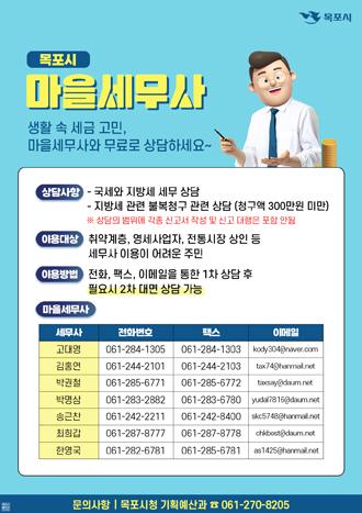 ¸ñÆ÷½Ã Á¦5±â ¸¶À»¼¼¹«»ç´Â 7¸íÀ¸·Î ¼¼¹« »ó´ãÀ» ¿øÇÏ´Â ½Ã¹ÎÀº ÇàÁ¤¾ÈÀüºÎ ¹× ½Ã ȨÆäÀÌÁö¿¡¼ °¡±îÀÌ ÀÖ´Â ¸¶À»¼¼¹«»ç¸¦ È®ÀÎÇØ »ó´ãÀ» ½ÅûÇÏ¸é µÈ´Ù.