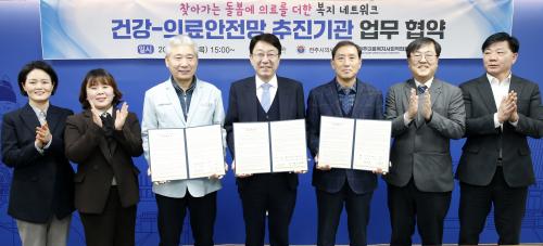 ½Ã´Â 8ÀÏ ÀüÁÖ½Ãû 3Ãþ ȸÀǽǿ¡¼ ¿ì¹ü±â ÀüÁÖ½ÃÀå°ú Á¤°æÈ£ ÀüÁÖ½ÃÀÇ»çȸÀå, ±è±ÇÈñ ÀüÁÖÀǷẹÁö»çȸÀûÇùµ¿Á¶ÇÕ(ÀÌÇÏ ÀüÁÖÀÇ·á»çÇù) ÀÌ»çÀå, ±è½Å¼± ÀüÁֽú¸°Ç¼ÒÀå µîÀÌ Âü¼®ÇÑ °¡¿îµ¥ ¼º°øÀûÀÎ ¡®ÀüÁÖÇü ÅëÇÕµ¹º½ 2024¡¯ °Ç°-ÀÇ·á¾ÈÀü¸Á »ç¾÷ ÃßÁøÀ» À§ÇÑ ¾÷¹«Çù¾à ü°áÇß´Ù.