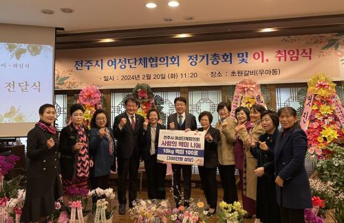 ¿ì¹ü±â ÀüÁÖ½ÃÀåÀº Ãà»ç¸¦ ÅëÇØ ¡°ÀüÁֽÿ©¼º´ÜüÇùÀÇȸ´Â ¿©¼º´Üü °£ÀÇ »óÈ£Çù·Â°ú Ä£¼±À» µµ¸ðÇϰí Áö¿ª»çȸ ºÀ»çȰµ¿, ¿©¼ºÀÇ º¹ÁöÇâ»óÀ» À§ÇÑ ´Ù¾çÇÑ »ç¾÷À» ÃßÁøÇؿԴ١±¸é¼ ¡°¾ÕÀ¸·Îµµ ¿©¼º´Üü Ȱµ¿À» ÅëÇØ ½×Àº dzºÎÇÑ °æÇèÀ» ¹ÙÅÁÀ¸·Î ÀüÁֽà ¹ßÀüÀ» À§ÇØ ¸¹Àº °ü½É°ú ³ë·Â ºÎʵ叮¸ç, ÀüÁֽõµ ÀüÁֽÿ©¼º´ÜüÇùÀÇȸ Ȱµ¿¿¡ Àû±Ø ÇÔ²² ÇÒ °Í¡±À̶ó°í ¸»Çß´Ù.