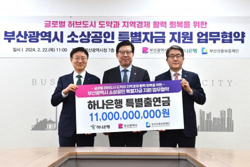 ½Ã´Â 22ÀÏ¿ÀÀü 11½Ã ½Ãû ±¹Á¦ÀÇÀü½Ç¿¡¼ ÇϳªÀºÇà, ºÎ»ê½Å¿ëº¸ÁõÀç´Ü°ú ¡¸¼Ò»ó°øÀÎ Á¤Ã¥ÀÚ±Ý Áö¿ø ¾÷¹«Çù¾à¡¹À» ü°áÇÑ´Ù°í ¹àÇû´Ù.