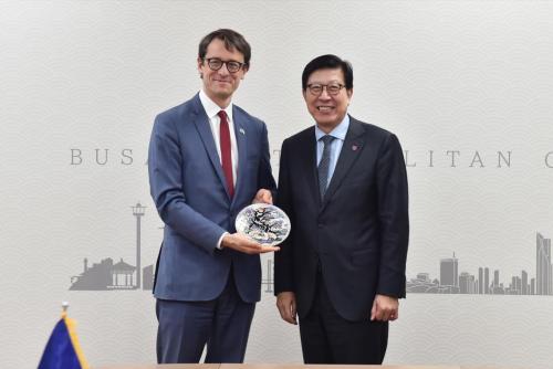 ¹Ú ½ÃÀåÀº ¸ÕÀú Çʸ³ º£¸£Åõ ÁÖÇÑÇÁ¶û½º´ë»ç¿¡°Ô ¡°ºÎ»ê ¹æ¹®À» Áø½ÉÀ¸·Î ȯ¿µÇÑ´Ù.