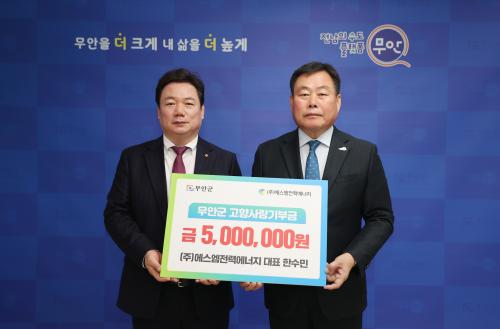 ¢ß¿¡½º¿¥Àü·Â¿¡³ÊÁö ÇѼö¹Î ´ëÇ¥, ¹«¾È±º °íÇâ»ç¶û±âºÎ±Ý 500¸¸ ¿ø ±âŹ