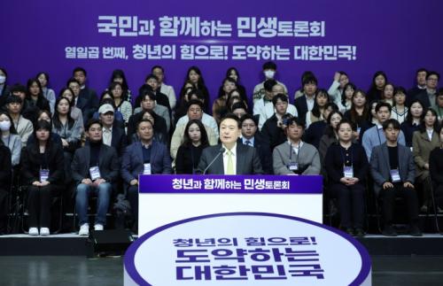 Á¤ºÎ´Â 5ÀÏ °æ±âµµ ±¤¸í ¾ÆÀ̺¤½º ½ºÆ©µð¿À¿¡¼ À±¼®¿ ´ëÅë·ÉÀÌ Âü¼®ÇÑ °¡¿îµ¥ ¿¸° ¡®Ã»³âÀÇ ÈûÀ¸·Î µµ¾àÇÏ´Â ´ëÇѹα¹¡¯À» ÁÖÁ¦·Î ¿¸° ¹Î»ý Åä·Ðȸ¿¡¼ û³âÁ¤Ã¥ ÆÐŰÁö¸¦ ¹ßÇ¥Çß´Ù.