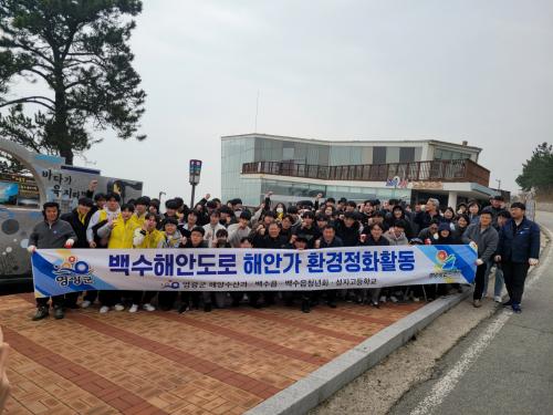 ¿µ±¤±º(ÇØ¾ç¼ö»ê°ú, ¹é¼öÀ¾)°ú ¹é¼öû³âȸ, ¼ºÁö°í Çлý ¹× ±³Á÷¿ø µî 100¿© ¸íÀº ´ëÇѹα¹ ´ëÇ¥°ü±¤Áö ¹é¼öÇØ¾Èµµ·Î¿¡ ¹Ð·Á¿Â ÇØ¾ç¾²·¹±â¸¦ ¼ö°ÅÇÏ¿© º¸´Ù ±ú²ýÇÑ ÇØ¾Èµµ·Î¸¦ ¸¸µå´Â µ¥ ÀÏÁ¶ÇÏ¿´´Ù.