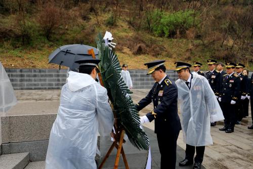 ÃëÀÓ ÈÄ Ã¹ ¹øÂ° ÀÏÁ¤À¸·Î ºñ°¡ ³»¸®´Â »óȲ¿¡¼µµ ±³À°¿ø ³» ÃæÈ¥Å¾À» ¹æ¹®ÇÏ¿©, ±¹°¡¿Í ±¹¹ÎÀ» À§ÇØ »ý¸íÀ» ¹ÙÄ£ ¼øÁ÷ °ø¹«¿ø°ú È£±¹ ¿µ·ÉµéÀÇ ³ÌÀ» À§·Î Çϰí Âü¹èÇß´Ù.