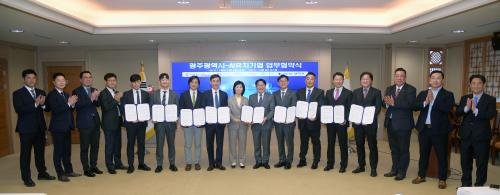 ±¤ÁÖ±¤¿ª½Ã(½ÃÀå °±âÁ¤)´Â 25ÀÏ ¿ÀÈÄ ½Ãû ºñÁî´Ï½º·ë¿¡¼ ¸ÞŸºôµå, ·ÎÁ¦Å¸ÅØ, ¿ø´õÇ®Ç÷§Æû, Çѱ¹¹ö½º¹æ¼Û, ¾ÆÀ̸޵ð½Å, °¡¿ÂÇ÷§Æû, Ä¥·Î¿£, ¿£¿¢½º µî 8°³ ÀΰøÁö´É ±â¾÷µé°ú 175~182¹øÂ° ¾÷¹«Çù¾àÀ» ü°áÇß´Ù.