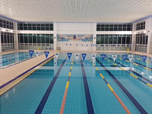 Áøµµ±¹¹ÎüÀ°¼¾Å͸¦ ÀÌ¿ëÇÏ´Â ÁÖ¹ÎÀÇ ¸¸Á·µµ¸¦ ³ôÀ̱â À§ÇØ ´ÜÁ¶·Î¿î ¼ö¿µÀå ³»ºÎ Èò»ö º®¸éÀ» ´ëÇü ¸ðÀÚÀÌũŸÀÏ ¹Ì¼úÀÛǰÀ¸·Î ä¿ö Ȱ±âÂù ½Ç³» °ø°£À¸·Î À籸¼ºÇß´Ù.