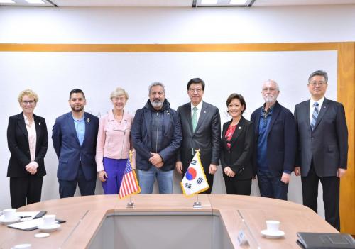 ¸ÕÀú, ¹Ú ½ÃÀåÀº ¡°Çѱ¹¿¡ ¸¹Àº °ü½ÉÀ» °¡Áö°í °è½Ã´Â ¹Ì ÀÇȸÀÇ ÀÇ¿ø´Ôµé°ú ÀÌ·± ¶æ±íÀº ¸¸³²À» °¡Áö°Ô µÇ¾î ¸Å¿ì ±â»Ú°Ô »ý°¢ÇÑ´Ù¡±¶ó¸ç, ¡°¹Ù»Ú½Å Áß¿¡ ºÎ»êÀ» ã¾ÆÁà °¨»çÇÏ´Ù¡±¶ó°í ȯ¿µ Àλ縦 ÀüÇß´Ù.