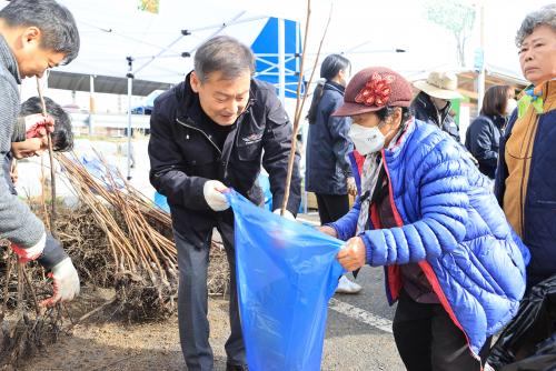 À̹ø Çà»ç´Â ³ª¹« ½É±â ÁÁÀº °èÀýÀÎ º½À» ¸ÂÀÌÇØ Á¤¿ø ¹× ÀÚÅõ¸® ¶¥¿¡ À¯½Ç¼ö¸¦ ½ÄÀçÇÏ°í °¡²Ü ¼ö ÀÖµµ·Ï °¨³ª¹«, »ì±¸³ª¹«, Àڵγª¹« µî 3Á¾ 2,200ÁÖ¸¦ ³ª´©¾îÁÖ°í ½ÄÀç¿ä·ÉÀ» È«º¸Çß´Ù.