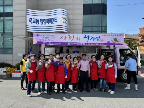 ¸ñÆ÷¼º½É¿ä¾çº´¿øÀº ǪµåÆ®·°¿¡¼ ¹Ù·Î Â¥Àå¸éÀ» ¸¸µé¾î ÅëÀå´Ôµé°ú ÇÔ²² °æ·Î´ç 3°³¼Ò¿¡ ¹è´ÞÇßÀ¸¸ç, °æ·Î´çÀ» ÀÌ¿ëÇÏÁö ¾Ê´Â ¾î¸£½ÅµéÀ» À§ÇØ Á×±³µ¿ÇàÁ¤º¹Áö¼¾ÅÍ 2Ãþ¿¡¼ ½Ä»ç¸¦ ´ëÁ¢Çß´Ù.