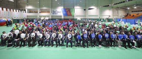 ¡®´Ù¸§ÀÌ ¾Æ´Ñ °ø°¨À¸·Î¡¯¸¦ ½½·Î°ÇÀ¸·Î ÇÑ À̹ø ¼±Æ÷½ÄÀº °ü³» Àå¾ÖÀΰú ºñÀå¾ÖÀÎ, ÁÖ¿ä ³»¿Üºó µî 600¿© ¸íÀÌ Âü¼®ÇÑ °¡¿îµ¥ Á¤´ÙÀº ºñÁ¯Àå¾ÖÀÎÀÚ¸³»ýȰ¼¾ÅÍ »ç¹«±¹Àå, À̽ÂÀ± E.T ¾ß±¸´Ü ´ëÇ¥, À屿¼÷ Àå¾ÖÀÎ ½ÃÀÎ, ±è±â¼º Àå¾ÖÀÎÀÏÀÚ¸® Âü¿©ÀÚ ´ëÇ¥ µîÀÌ ¡®Àå¾ÖÀÎ À뱂 ÇåÀ塯À» ³¶µ¶Çß´Ù.