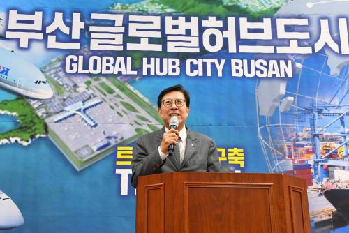 ¹ÚÇüÁØ ½ÃÀåÀº ±Û·Î¹úºÎ»ê½Ã¹Î¿¬ÇÕ Ãâ¹ü¿¡ ȯ¿µÀÇ ¶æÀ» Ç¥Çϸç, ¡°Æ¯º°¹ýÀº ºÎ»êÀ» ±¹Á¦Àû ¼öÁØÀÇ ±Û·Î¹úÇãºêµµ½Ã·Î Á¶¼ºÇϱâ À§ÇÑ Á¦µµÀû ±â¹ÝÀ¸·Î, ºÎ»êÀÌ ¼¼°èÀÇ ¹°·ù¿Í ÀÎÀç, ±ÝÀ¶, ½Å»ê¾÷ÀÌ ¸ô·Áµå´Â ¸Å·ÂÀûÀÎ ±âȸÀÇ µµ½Ã°¡ µÇ±â À§ÇÑ ³»¿ëÀ» ºüÁü¾øÀÌ ´ã¾Ò´Ù¡±¶ó¸ç, ¡°Æ¯º°¹ý Åë°ú µî °ü·Ã Á¤Ã¥ ½ÇÇöÀ» À§ÇØ ¶æÀ» ¸ð¾ÆÁֽŠ½Ã¹Î ¿©·¯ºÐÀÇ ¿ÀÇ¿¡ ±íÀÌ °¨»çµå¸°´Ù¡±¶ó°í ÀüÇß´Ù.