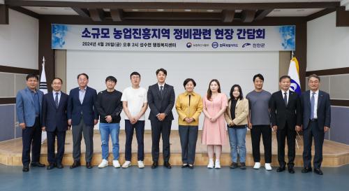 ÇöÀå Á¡°Ë¿¡ ¾Õ¼ ½Ç½ÃÇÑ °£´ãȸ¿¡¼´Â ³ó¸²ºÎ ³óÁö°úÀåÀ¸·ÎºÎÅÍ ¼Ò±Ô¸ð ³ó¾÷ÁøÈïÁö¿ª Á¤ºñ°èȹ¿¡ ´ëÇÑ ¼³¸íÀÌ ÀÖ¾úÀ¸¸ç, Áø¾È, ¹«ÁÖ, Àå¼ö û³â³ó¾÷ÀÎ µîÀ¸·ÎºÎÅÍ ÇöÀå ÀǰßÀ» ûÃëÇϱ⵵ Çß´Ù.