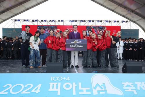 1À§´Â ÀÚÀ¯·Ó°í µµÀüÀûÀΠȰµ¿À» ÇÏ´Â ¿¹¼ú ´ÜüÀÎ ÆÀ ³ÓÃ÷(¼¿ï, 24¸í)°¡ ¼±Á¤µÇ¾î ½Ã»ó±Ý 2,000¸¸ ¿øÀ» ¼ö»óÇß°í, 2À§´Â ÄÄÈ÷¾î(¼¿ï, 20¸í) 1,000¸¸ ¿ø, 3À§´Â O.N.O(¼¿ï, 12¸í)°¡ ¼±Á¤µÇ¾î 500¸¸ ¿øÀ» ¼ö»óÇß´Ù.
