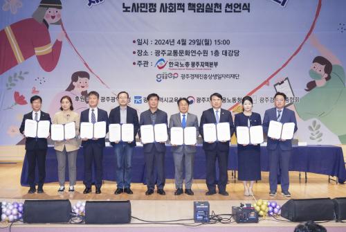 ³ë»ç¹ÎÁ¤ »çȸÀû Ã¥ÀÓ ½Çõ ¼±¾ð½Äµµ ÁøÇàÇß´Ù. ±¤ÁÖ½Ã¿Í Çѱ¹³ëÃÑ ±¤ÁÖÁö¿ªº»ºÎ, ±¤Áְ濵ÀÚÃÑÇùȸ, ±¤ÁֽùδÜüÇùÀÇȸ, ±¤Áֽñ³À°Ã», ±¤ÁÖÁö¹æ°í¿ë³ëµ¿Ã», ±¤»ê±¸, ±¤ÁÖ½ÃÀÇȸ, ±¤ÁÖ°æÁ¦ÁøÈï»ó»ýÀÏÀÚ¸®Àç´ÜÀÌ Âü¿©Çß´Ù.