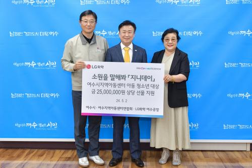 Á¤±â¸í ¿©¼ö½ÃÀåÀº ¡°Àú¼Òµæ ¾Æµ¿À» À§ÇØ Áö¼ÓÀûÀ¸·Î ÈÄ¿øÇØ ÁֽŠLGÈÇп¡ °¨»ç¸¦ µå¸°´Ù¡±¸ç ¡°¾Æµ¿µéÀÌ ¸¾²¯ ²ÞÀ» ÆîÄ¡¸ç ÇູÇÒ ¼ö ÀÖ´Â µµ½Ã ¸¸µé±â¿¡ ÃÖ¼±À» ´ÙÇϰڴ١±°í ¸»Çß´Ù.