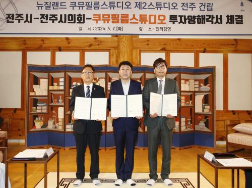 ÀüÁÖ½Ã¿Í ÀüÁÖ½ÃÀÇȸ, ´ºÁú·£µå Äí¹Â½ºÆ©µð¿À´Â 7ÀÏ Àü¶ó°¨¿µ¿¡¼ ¿ì¹ü±â ÀüÁÖ½ÃÀå°ú À⵿̱ ÀüÁÖ½ÃÀÇȸ ÀÇÀå, ÇÇÅÍ À¯(À¯¼ºÈ¯) Äí¹ÂÇʸ§½ºÆ©µð¿À ´ëÇ¥ µîÀÌ Âü¼®ÇÑ °¡¿îµ¥ ¡®´ºÁú·£µå Äí¹ÂÇʸ§½ºÆ©µð¿À Á¦2 ½ºÆ©µð¿À ÀüÁÖ °Ç¸³À» À§ÇÑ ÅõÀÚ ¾çÇØ°¢¼¡¯¸¦ ü°áÇß´Ù.