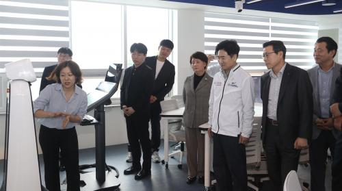 »çÀü ¹Ì·¡±³½Ç Àü¸é Áß¾Ó¿¡´Â ´ëÇü ÀüÀÚÄ¥ÆÇÀÌ µé¾î¼ ¼ö¾÷ ÀڷḦ º¼ ¼ö ÀÖ°í, ·Îº¿ÀÌ ±³½Ç °÷°÷À» µ¹¾Æ´Ù´Ï¸ç ÇнÀ Áö¿øÀ» µ½´Â´Ù.